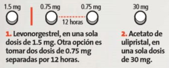 La OMS recomienda uno de los 2 fármacos siguientes para la anticoncepción de emergencia: